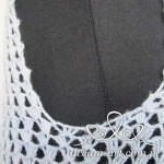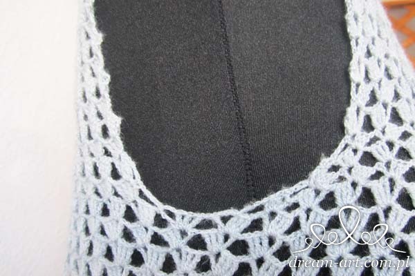 Żeby uzyskać zaszewkę na biust w przedniej części zaraz po oddzieleniu pachy w 3 rzędach ostatnie 3-4 motywy robiłam mniejsze a dokładniej niższe co trochę widać na trzecim zdjęciu. Niestety lepszym zdjęciem nie dysponuję, a ponieważ bluzeczka ma już nowego właściciela nie mam jak sfotografować. Bluzeczka była już odrabiana w różnych wariacjach i wiem, że i bez tej zaszewki jest całkiem w porządku, więc może nie warto się męczyć.