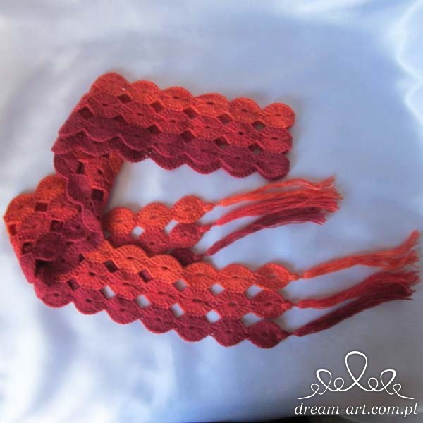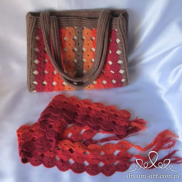 Torba i szalik z włóczki gobelinowej: 10% wełny, 15% poliamidu, 75% akrylu, motek 50g = 300m.